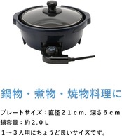外形寸法:(約)幅28 奥行33 高さ15.5cm、プレートサイズ:(約)内径21 深さ6cm、質量:(約)1.7kg