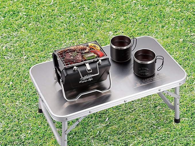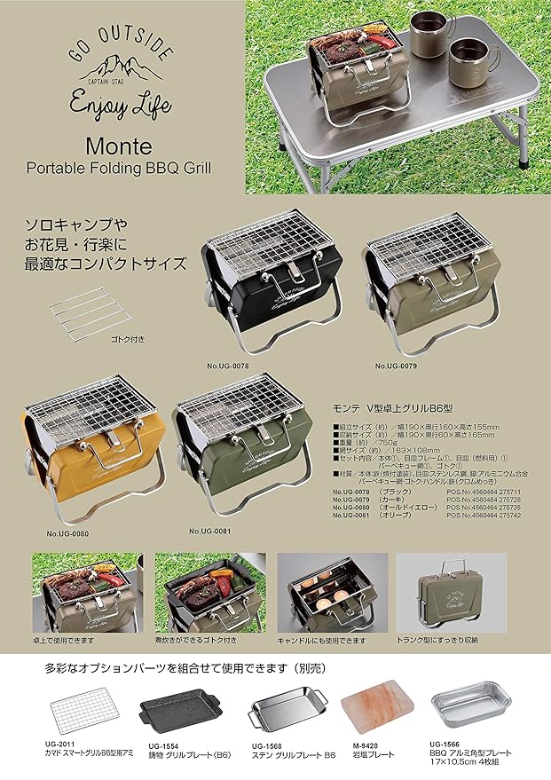 材質:本体/鉄(焼付塗装)、目皿/ステンレス鋼、脚/アルミニウム合金、バーベキュー網・ゴトク・ハンドル/鉄(クロムめっき)