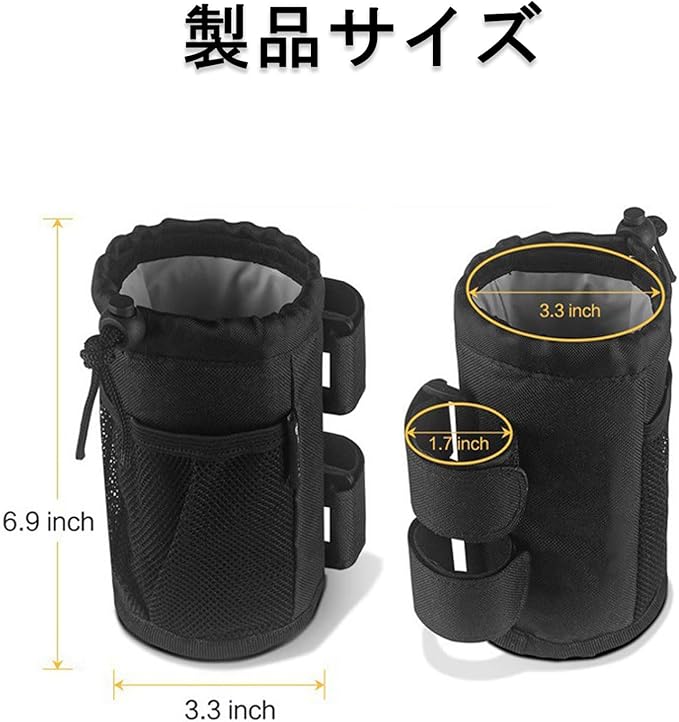 【製品仕様】名称:自転車用水筒バッグ。素材:ポリエステル。サイズ:17.5*8.5*17.5 cm。