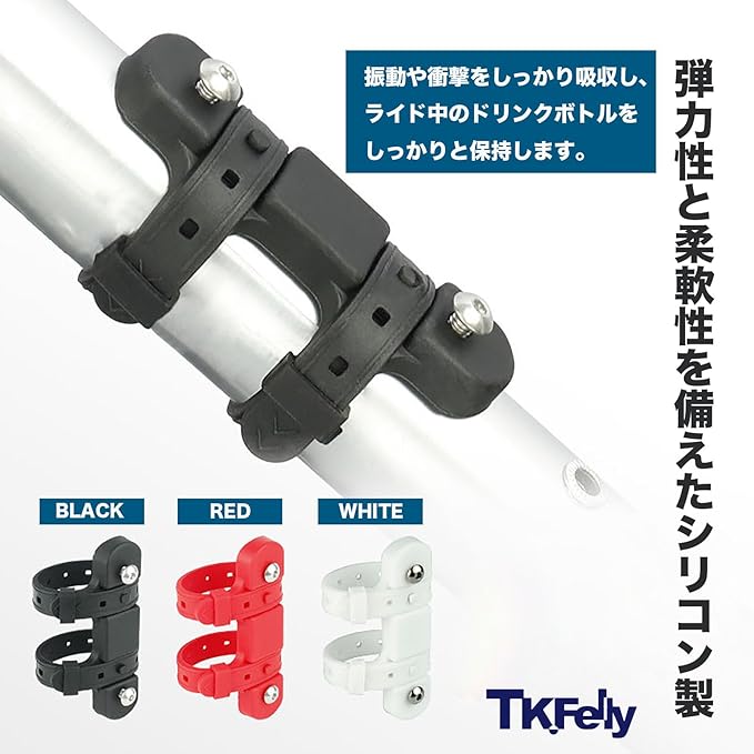 【商品】自転車用のシリコン製ボトルケージアダプターで、後からボトルケージを追加することができます。お好きな色はブラック、ホワイト、レッドの3種類から選べます。