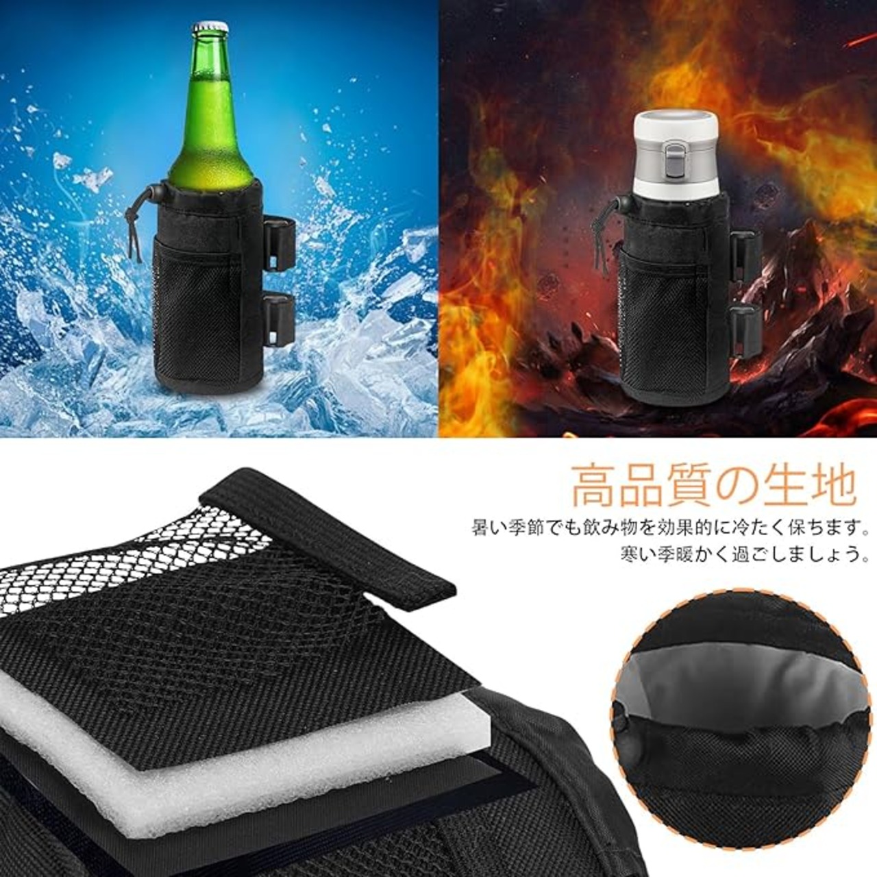 【自転車 ボトルホルダー】便利な自転車ドリンクホルダーです。暑い夏では、飲み物を長時間涼しく保ち、寒い冬では飲み物を効果的に暖かく保ちます。