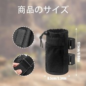 【製品仕様】自転車ボトルケージはポリエステルと断熱材を採用して、保温断熱効果があり、耐久性に優れます。バッグの底に排水穴があり、手入れも簡単です。高さ約17.5cm、直径約8.5cm。