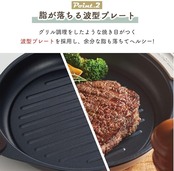 【脂が落ちる波型プレート】 焼き目がくっきりとつく波型プレートで、ステーキや焼魚などの調理におすすめ! 余分な脂を落としながら、こんがり美味しく焼き上げます。