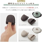 【Toffyロゴ入りのシリコーンミトン付き】 蓋つまみや持ち手をつかむときに便利な、シリコーン製のミトンが2個付属! サッと洗えていつも清潔です。