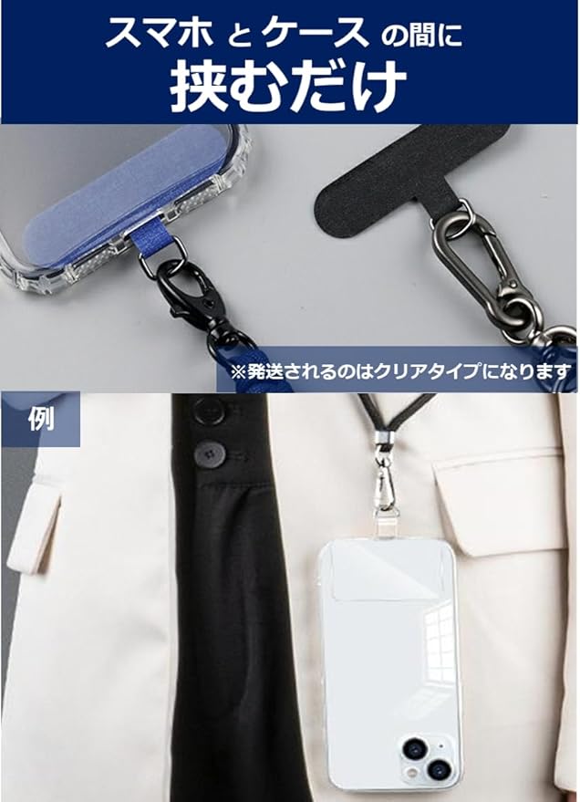 【装着簡単・充電に干渉しない】タグパッチをケースとスマホの間に挟んで、ストラップホールが外付けなので、自分好みに合わせて、ネックストラップやハンドストラップに装着できます。透明の特徴を備えて、装着しても何もつけないような薄型がデザインされます。わずか0.6mmの薄さで、ケーブル/ワイヤレス充電に邪魔しません。防水効果があり、埃や汚れになる場合には簡単に拭き取ります。