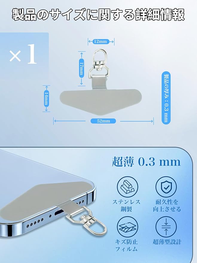 【取り付け簡単&充電非干渉】タグパッチをケースとスマホの間に挟み込むだけで取り付け完了。外付けのストラップホールで、ネックストラップやハンドストラップの取り付けが自由自在。0.3mm の超薄型で、ケーブル / ワイヤレス充電に影響を与えません。透明&薄型デザインで装着感を感じさせず、防水性も備え、汚れは簡単に拭き取れます。