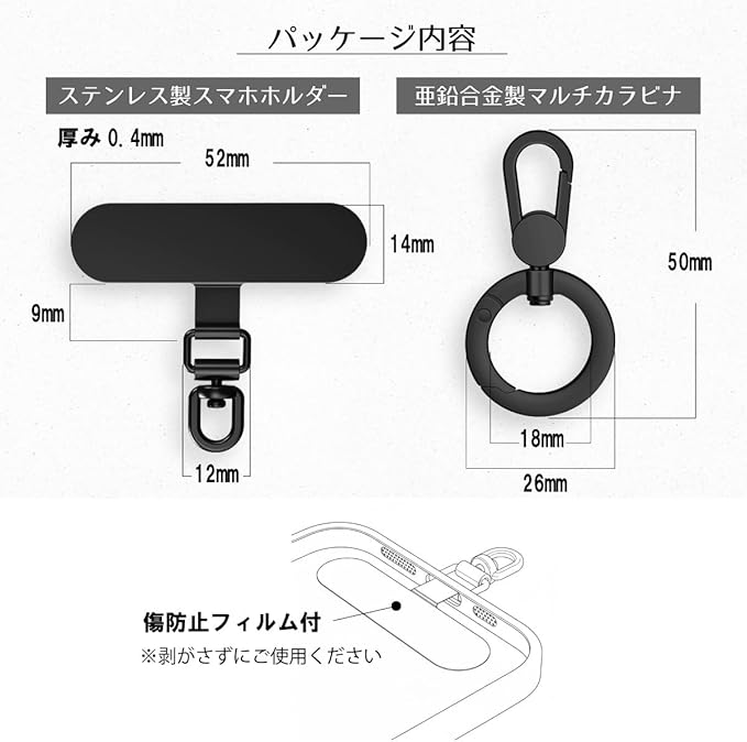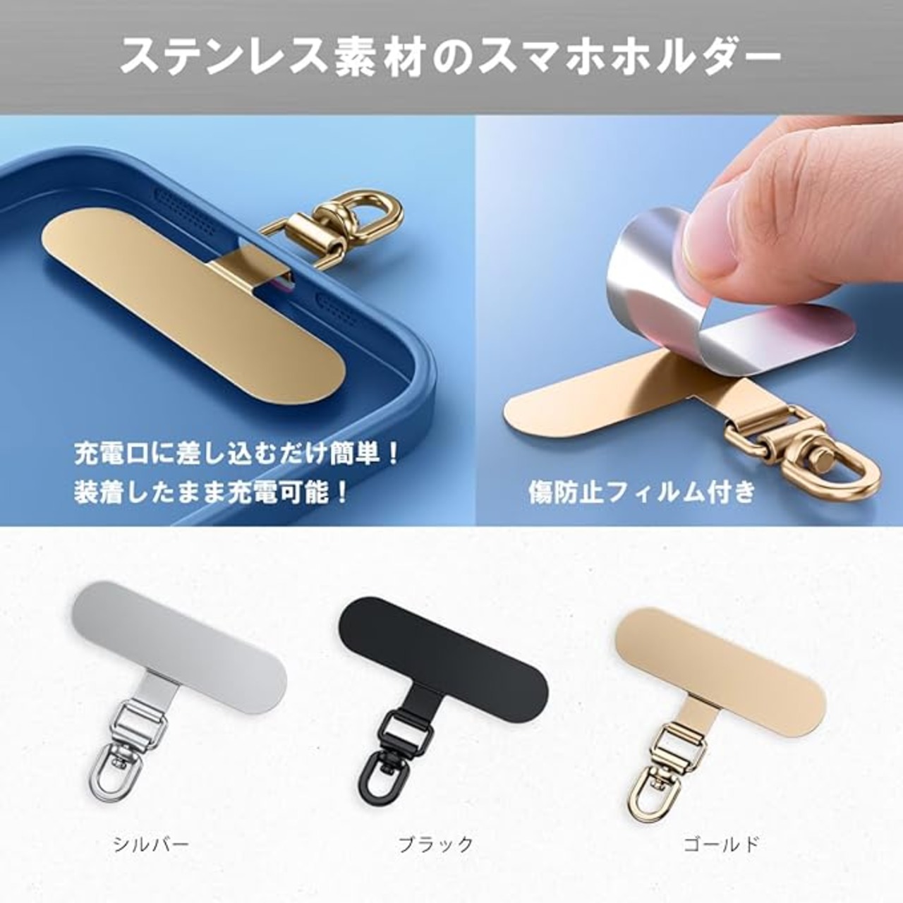 ☑【高耐久&安心設計】 ホルダーは錆びにくいステンレス素材を採用し、従来品に比べ耐久性が大幅アップ。背面にはスマホを保護するフィルム貼付済です。剥がさずそのままご使用ください。ホルダー部分も360 回転するため、ストラップの向きを自由に調整でき、使いやすさがさらに向上。※ホルダー装着時はスマホ下部がフラットでなくなるため、縦置きスタンドでの使用はできません。予めご了承ください。