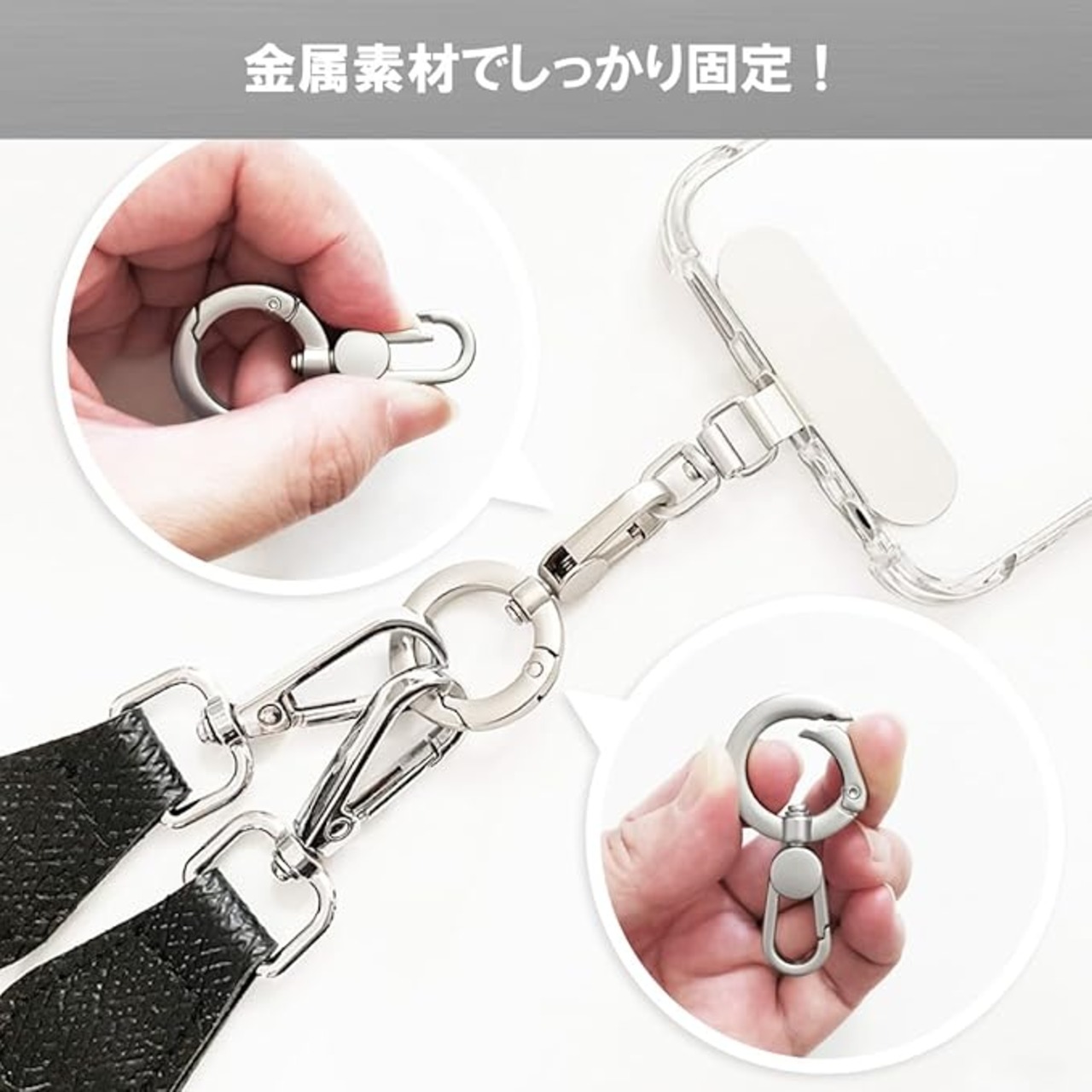 ☑【快適な360 回転カラビナ】 丈夫な亜鉛合金素材のカラビナは360度自由回転。ショルダーベルトやストラップがねじれにくく、毎日の使用が快適。リング部分を大きめに設計しているため、幅広ベルトや市販のストラップとの組み合わせも自在に楽しめます。