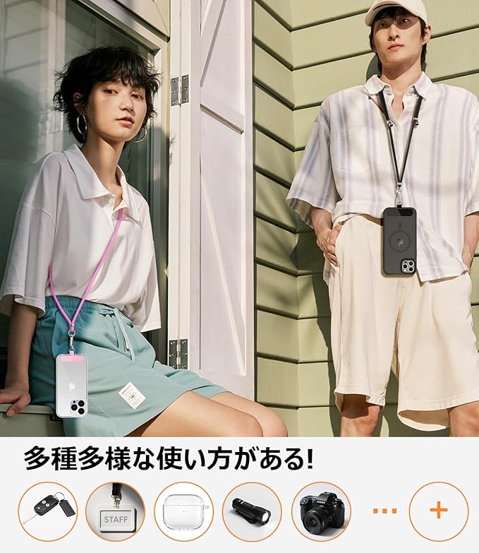 【両手が自由に!もっと快適に】スマホを“身につける”新習慣、ポケットがない服でも安心!斜めがけ・首掛け・ウエストアクセ風にアレンジでき、外出時もスマホがすぐに取り出せて便利。ベビーカーの操作中、スーパーでの買い物、旅行中の撮影…あらゆるシーンで両手が使えるので、ストレスフリー。