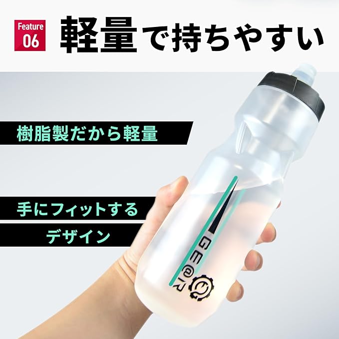 ✅【握るだけの簡単操作】このサイクルボトルは、ライド前にロックを解除しておけば、走行中に握るだけで水が出るスクイズボトルです。ジェットバルブ式で口に触れることなく衛生的に使用でき、柔らかい素材で作られているため、疲れていても簡単に飲めます。また、逆さにしても漏れない設計で、ボトルケージにしっかりフィットする仕様になっています。