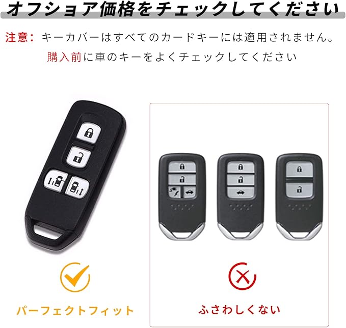 【適合車種】適合ホンダNシリーズ (両側スライドドア、4ボタン ) : 新型NBOX・NBOXカスタム・ N-BOX・N-BOX プラス・N-VAN(JJ1/JJ2)・Nワゴン・N-WGN・NWGN (JH1/JH2)・N-WGNカスタム (JH1/JH2)・N-ONE・NONE・Nワン (JG1/JG2)・N-BOX SLASH スラッシュ(JF1/JF2)・N-BOX / N-BOX カスタム(JF1/JF2)・N-BOX / N-BOX カスタム (JF1/JF2/JF3/JF4) 。 スマートキーの形状が一致していれば、ボタンの配置問わず取り付け可能です。