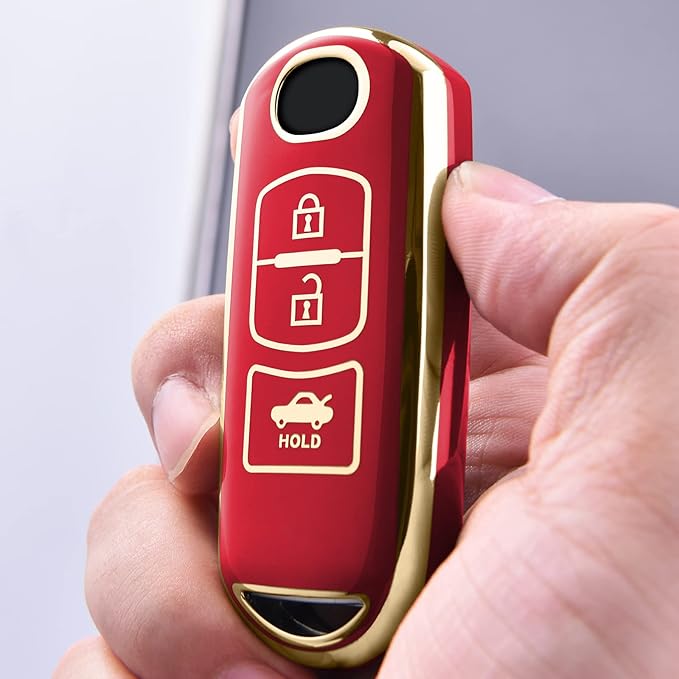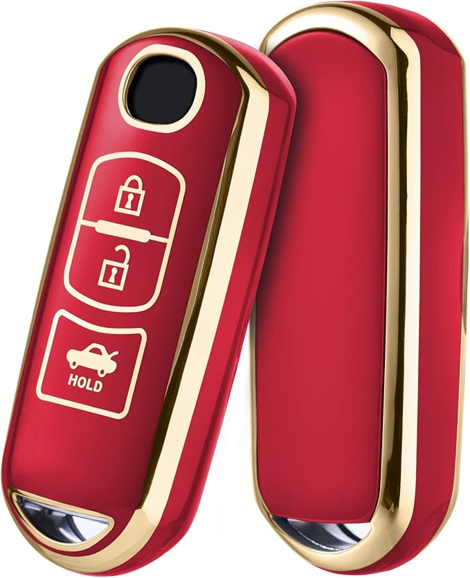 [OATSBASF] マツダ スマートキーカバー Mazda CX5 CX-8 キーケース 3ボタン TPU素材 360度全面保護 アクセラ アテンザ 適用 スマートキーケース (金縁レッド) | KAZESHOP