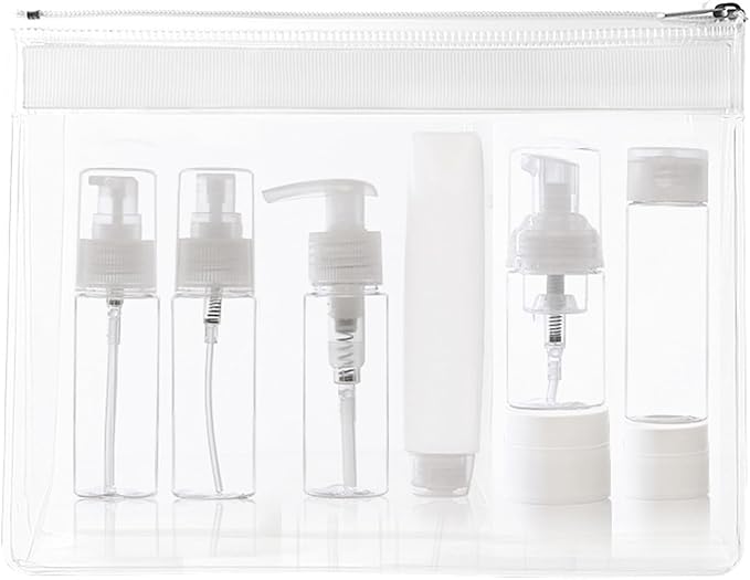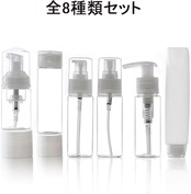【全8種類セット】ポンプボトル1本、スプレーボトル1本、泡ボトル1本、プッシュボトル1本、ワンタッチキャップ1本、小分けチューブ1本、クリームケース2個が揃っており、旅行用途に合わせて適切な容器を選んで、軽快に旅を楽しめます。