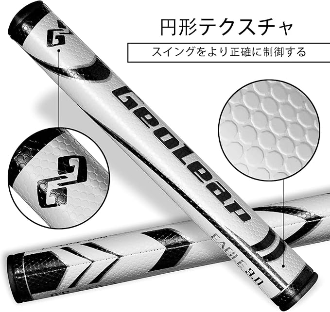 【表面テクスチャ】六角形の凹面設計により、ボールを打つ時にハンドグリップをつかむ手の滑る問題を効果的に防ぎます。ユニークなラインパターンのデザインにより、異なる視覚効果と感覚を達成できるだけでなく、ゴルファーはボールをより自信を持って穴に押し込むこともできます。