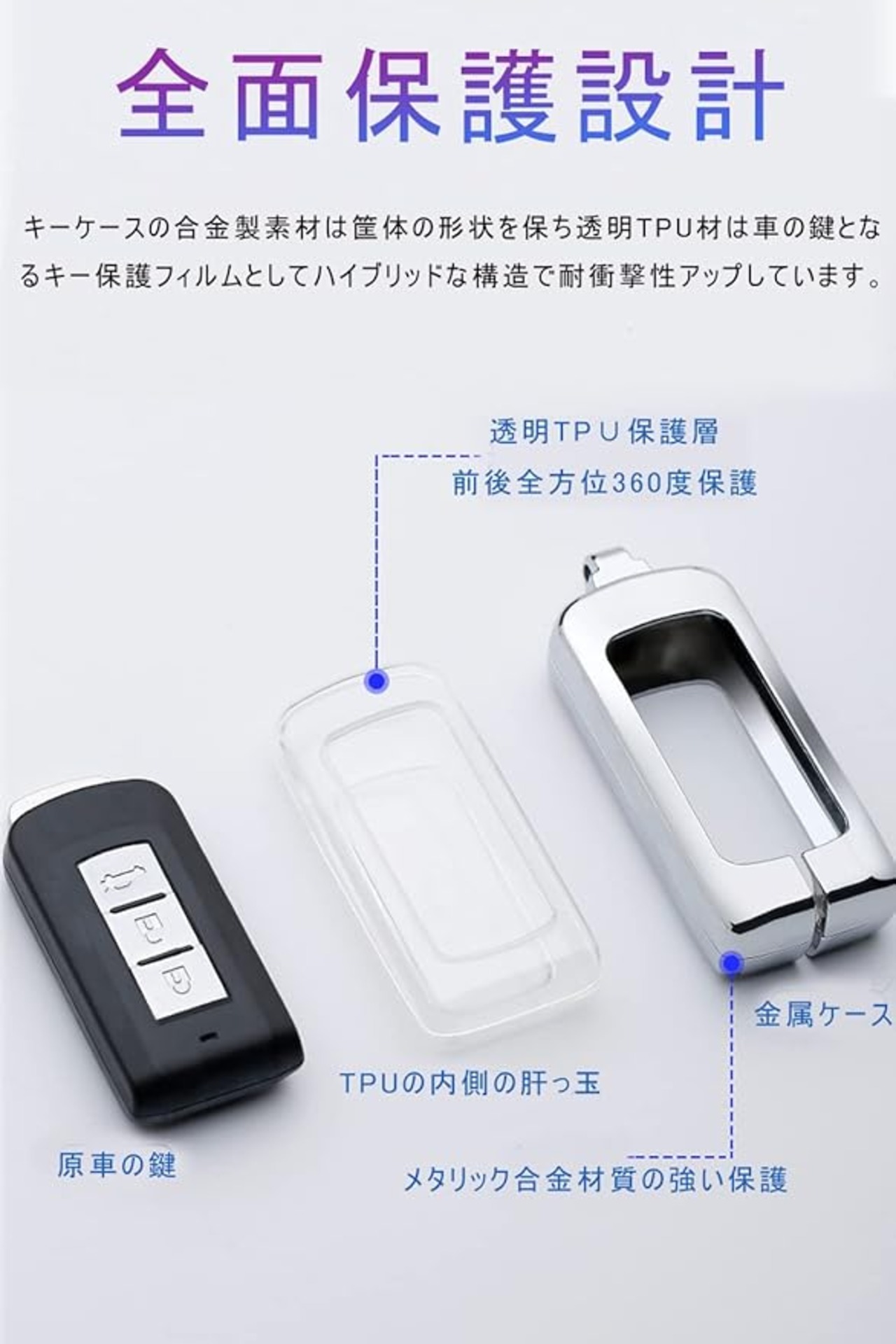 高級感:この三菱 キーケースは優れた亜鉛合金+TPU素材でできており、ほこりの汚れを防ぎ、手触りが非常に滑らかで、使いやすく、耐摩耗性と耐久性があり、防水性があります。変形しにくく、保護効果も高いです。車のキーが磨耗することはありません。豪華さを演出してくれます。本キーケースを取り付けるだけで愛車のスマートキーは高級車のキーに様変わりします。