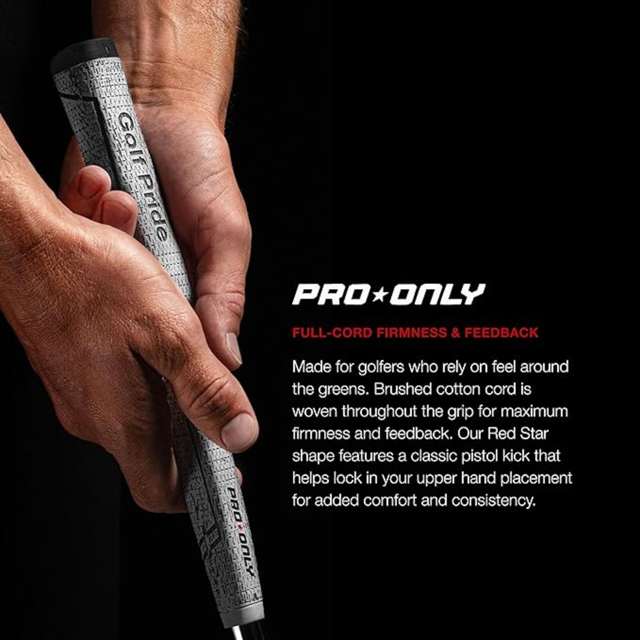 新しいプロオンリーコードパターグリップは、グリーンでの最適なフィードバックと精度のために、 より硬いラバーコンパウンドで親指を配置するためのアーチ型のパドルフロントを備えます。