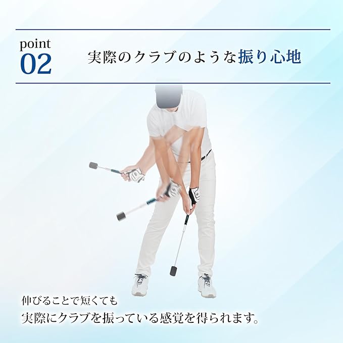 スイングした時の加速でシャフトが約61cmまで伸びるので、短くても実際のクラブのような振り心地を得られます。