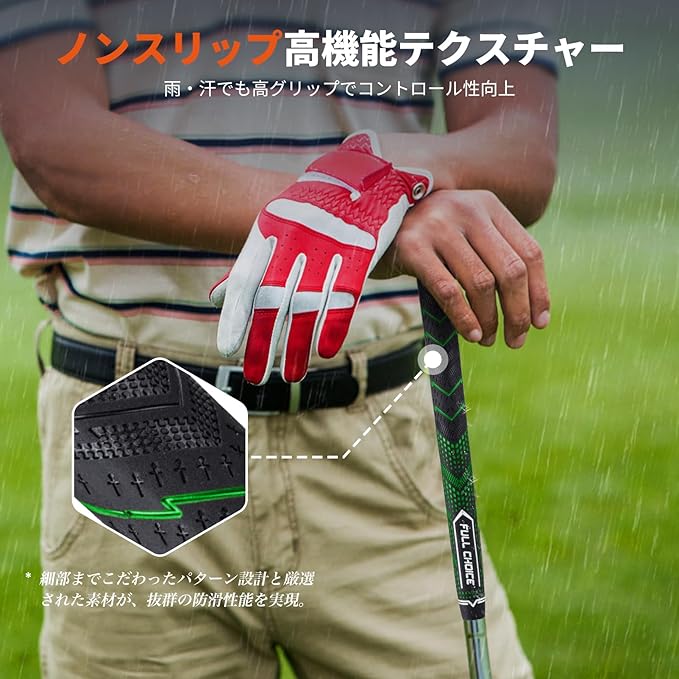 【全天候型滑り止め性能】表面の微細テクスチャーと耐候性ゴム素材を組み合わせ、湿気や乾燥した環境でも確かな摩擦力を維持。悪天候下でも安定したプレーが可能です