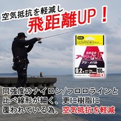 従来PEラインより、バックラッシュや結びコブなどのライントラブルが激減、飛距離10%アップ、低伸度で感度は2倍。