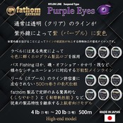 fathom EXTREMEはfathomのハイエンドモデル。fathom製品において定評のあるラインのしなやかさ、耐摩耗性能 などの製品特性を継承する上級者向けモデル。紫外線を浴びることによってラインの視認性が向上する特殊加工の蛍光ナイロンライン。通常は透明(クリア)のラインですが、紫外線によって紫(パープル)に変色します。ラベルには見る角度によって七色に輝くホログラム製品ロゴを採用しています。バスFishingほか、磯・オフショア・かかり・筏など様々なシチュエーションに対応する万能型メインライン。リール(スプール)のライン許容量に左右されない500m巻き(長尺仕様)。