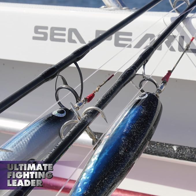 Finalistへの道を切り開く、究極のファイティングリーダー!数多の不可能を可能にしてきた男、佐藤偉知郎氏完全プロデュースによる「アルティメット ファイティングリーダー」。数々の実績に裏打ちされたモンスター仕様のファイティングリーダーシステムがFinalistへの道を切り開く。●リーダーには、信頼の「アバニ キャスティングショックリーダー マグロ」を使用。●スイベルは、SOULS社拘りのBBパワーマックススイベル「BB STRONG」を採用。万全の態勢でモンスターとのファイトに望めます。●ザイロン素材にリーダーを通したままリングへと接続することで、万が一リーダーの締まり切れが生じた場合でも、ザイロン素材がアシストする二段構え。また、ルアーアクションを損なわせないだけではなく、歯切れをも防止します。●豊富なラインナップでモンスターのみならず、パワーファイトが必要なあらゆるシーンに対応します。※中央の8の字はザイロンのズレを防止するものです。解かずにそのままご使用ください。これにより、本製品のクオリティーを損なわせることがございません。(ご使用の際は、8の字を締め込んでからお使いください。)