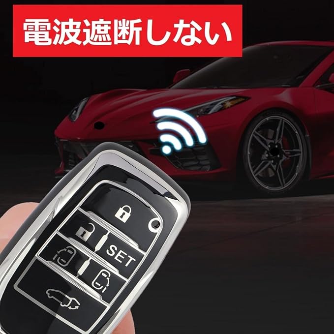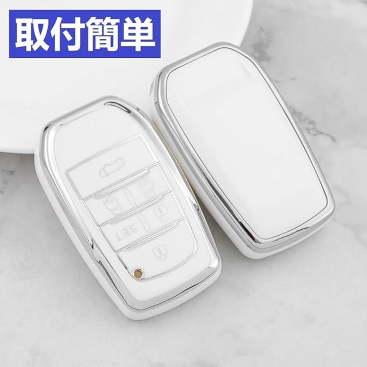 【電波遮断しない】キーカバーは電波遮断しないをされ、信号には邪魔しないので、安心的に利用できます。【可愛いと高級な質感】キーケースの表面は三層特殊なコーティングを採用し、鍵を金属のように輝いて、高級な輝きと質感で、かなり華やかな外観をしています。本キーケースを取り付けるだけで愛車のスマートキーは高級車のキーに相応しく様変わりします。何気なくスマートキーを出すだけで周りの注目を集めます。見た目はかっこよく、高級感もあり! それでも可愛いです!