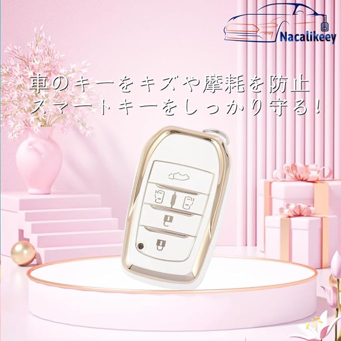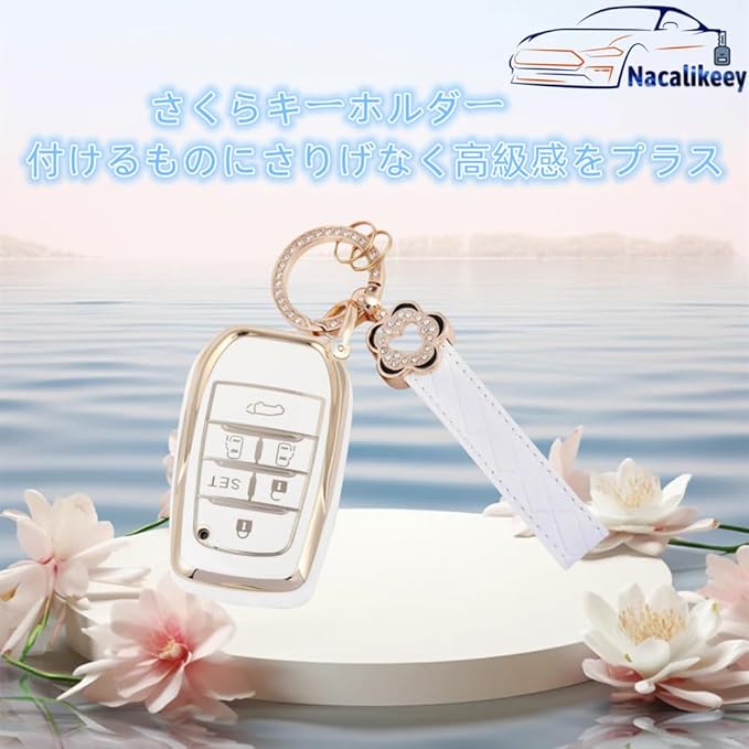 【Nacalikeey】アルファード30系 梅の花キーケース 適合トヨタ アルファード ヴェルファイア30系かわいいキーケース 後期 前期 さくらキーカバー 花キーホルダー(6ボタン,ホワイト) | KAZESHOP