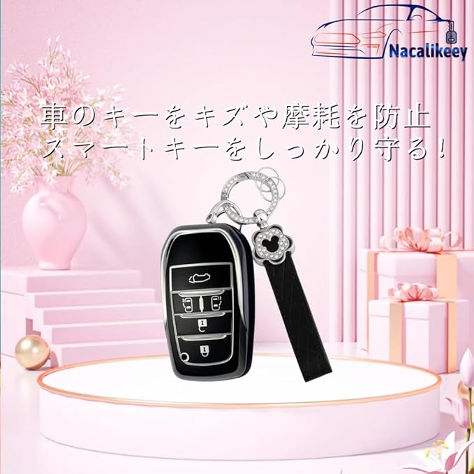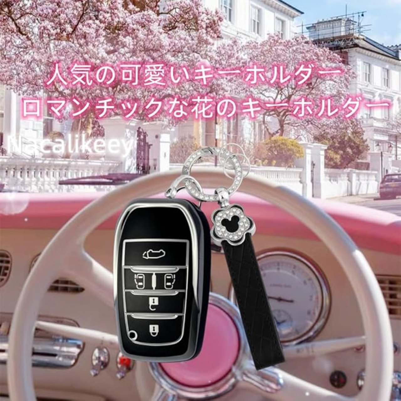 【Nacalikeey】キーケース適合アルファード30系可愛のキーケー ス適合トヨタ アルファード ヴェルファイア30系 梅の花キーケース後期 前期 さくらキーカバー かわいいのさくらキーホルダー(シルバー,6ボタン) | KAZESHOP
