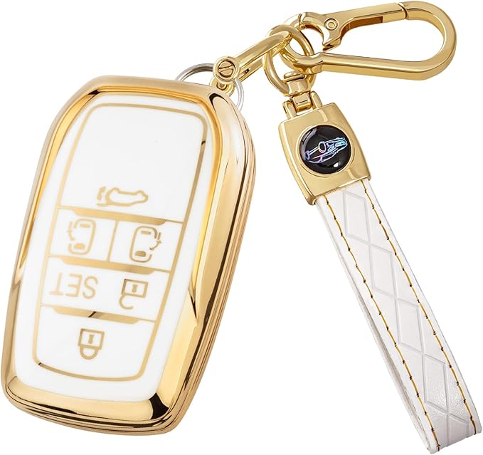 [Unhoke] アルファード キーケース 30系後期 rav4phv キーカバー ヴェルファイア30系 スマートキーケース キーホルダー 高級 軽量 傷防止 TPU製 6ボタン おしゃれ (金白) | KAZESHOP