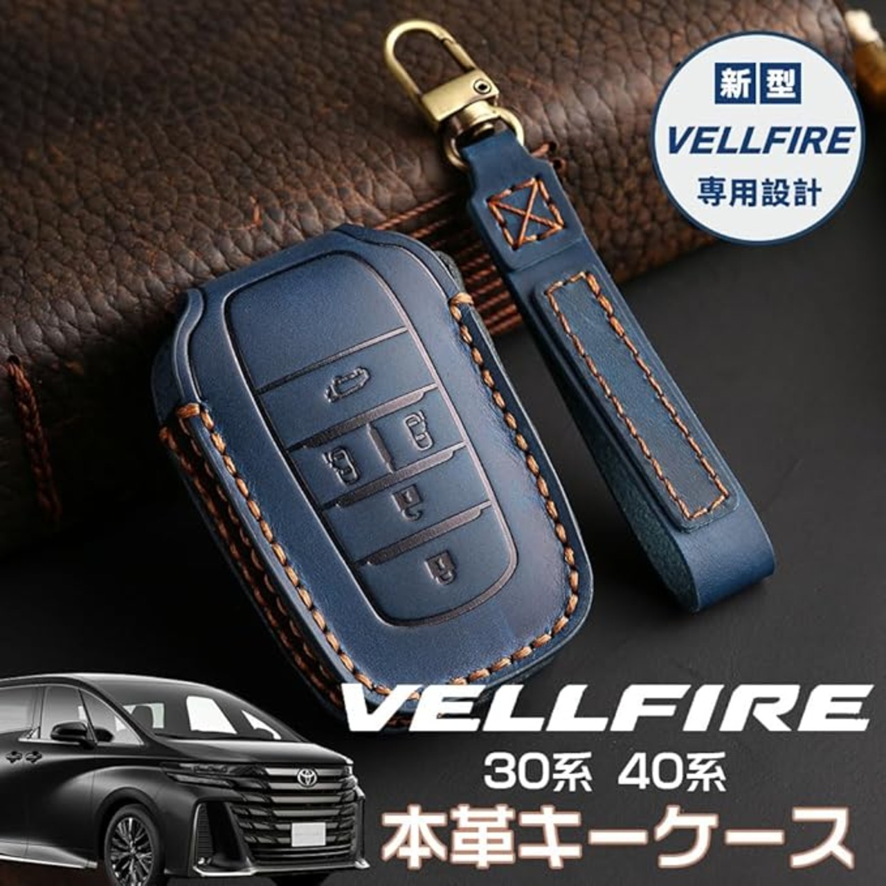 【LEXLEY 新型キーケース 登場】トヨタ VELLFIRE ヴェルファイア 30系 40系 専用 本革 キーケース レザー キーカバー キーホルダー スマートキーケース VELLFIREロゴ付 キズ防止 カスタムキーケース(ブルー) | KAZESHOP