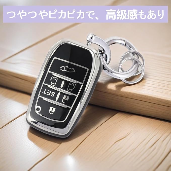 【電波が遮断されないし】ボタンは明確で、信号には影響しません、スマートキーのボタンも問題無く操作可。シルバーエッジのデザイン、キラキラしていて、 メタリックの光沢があり、めちゃくちゃ可愛い、耐久性、使いやすさ、軽さグッとです。また明るい色ではカバンなどから探しやすいです、可愛い目立つのでバッグの中から、素早く取り出せて。