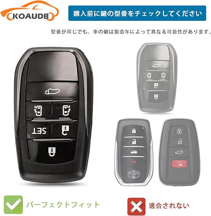 【適応車種】 適合TOYOTA アルファード30系後期 ヴェルファイア30系(AYH30W AGH30W AGH35W GGH30W GGH35W)【年式】前期 2015年(平成27年)1月〜、後期 2018年(平成30年)1月~。(6ボタン 専用) 注意: 年式により異なる場合がありますので、画像のキーの形状をご確認下さい。画像のキーの形であれば適合です。購入前に必ず画像のキーの形と一致いているかどうか確認してください。