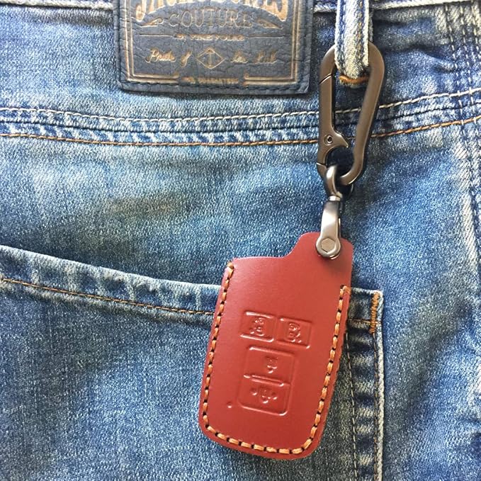 【キーカバーしたまま “ ボタン操作 “ 】 ボタンの形状を型押しすることで、スマートキーに “ 装着したままボタン操作できる “ よう仕上げております。わざわざカバーを外す必要はありません。装着方法 : キーケースに本体を入れ、ベルトを通うします。金具部分をドライバーで回し、固定します。取り付けは簡単で専用設計なのでしっかりフィットします。