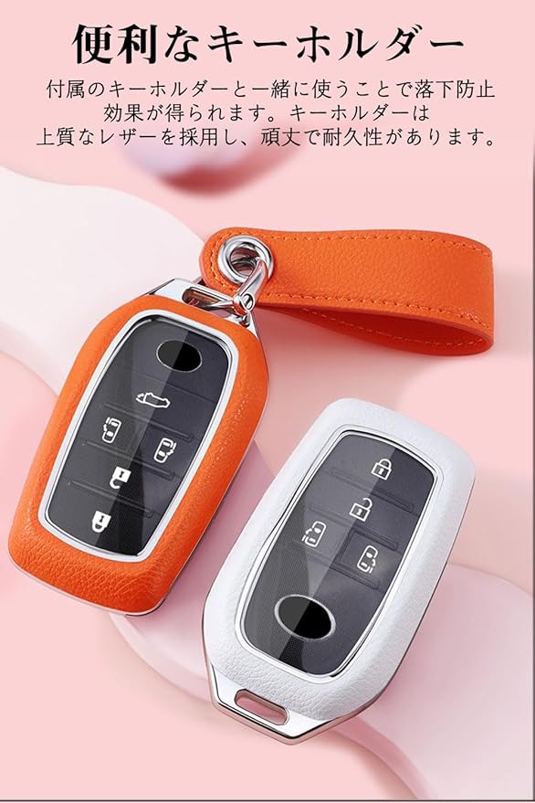上質の材料 :この ハリアー キーケース は 高品質のPC樹脂とレザーを利用します。PC材質のタフな質感とレザーの繊細で柔らかな感触がかんぺきに組み合わされ、TPUソフトフィルムボタンの保護と相まって、オシャレなマカロンカラーのカーキーカバーを形成しています。車のキーが磨耗することはありません。豪華さを演出してくれます。本キーケースを取り付けるだけで愛車のスマートキーは高級車のキーに様変わりします。