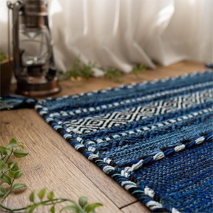 【備考】床暖房の上敷き、ホットカーペットカバー対応。 / 商品は[丸巻き]または、[折り畳み]の状態でお届けいたします。 / ※こちらの画像は、商品サイズ 60x90 cm を使用しております。【備考】手洗い可(洗濯機、乾燥機は不可) / 折りたたみ可 / 床暖房の上敷き、ホットカーペットカバー対応 /風合いにこだわる為、糸をミックスしてヴィンテージ感が出るようにしています。一点一点手作業で作る為に織りムラや歪みなどを感じることがあると思いますが、これもハンドメイドの味わいですので、ご理解くださいませ。/手洗い時、縮んだり色落ちしますので、漂白剤及び漂白剤入りの洗剤のご使用は避け、他の物と分けて単独でお洗いください。/完全に乾いた状態でご使用ください。/インド綿製品は色落ちしやすい特性があります。摩擦や水濡れ、汗によって色が移る可能性がございます。/インド綿の特性上、織りムラ、節、ネップ等ございますのでご了承の上、ご購入ください。