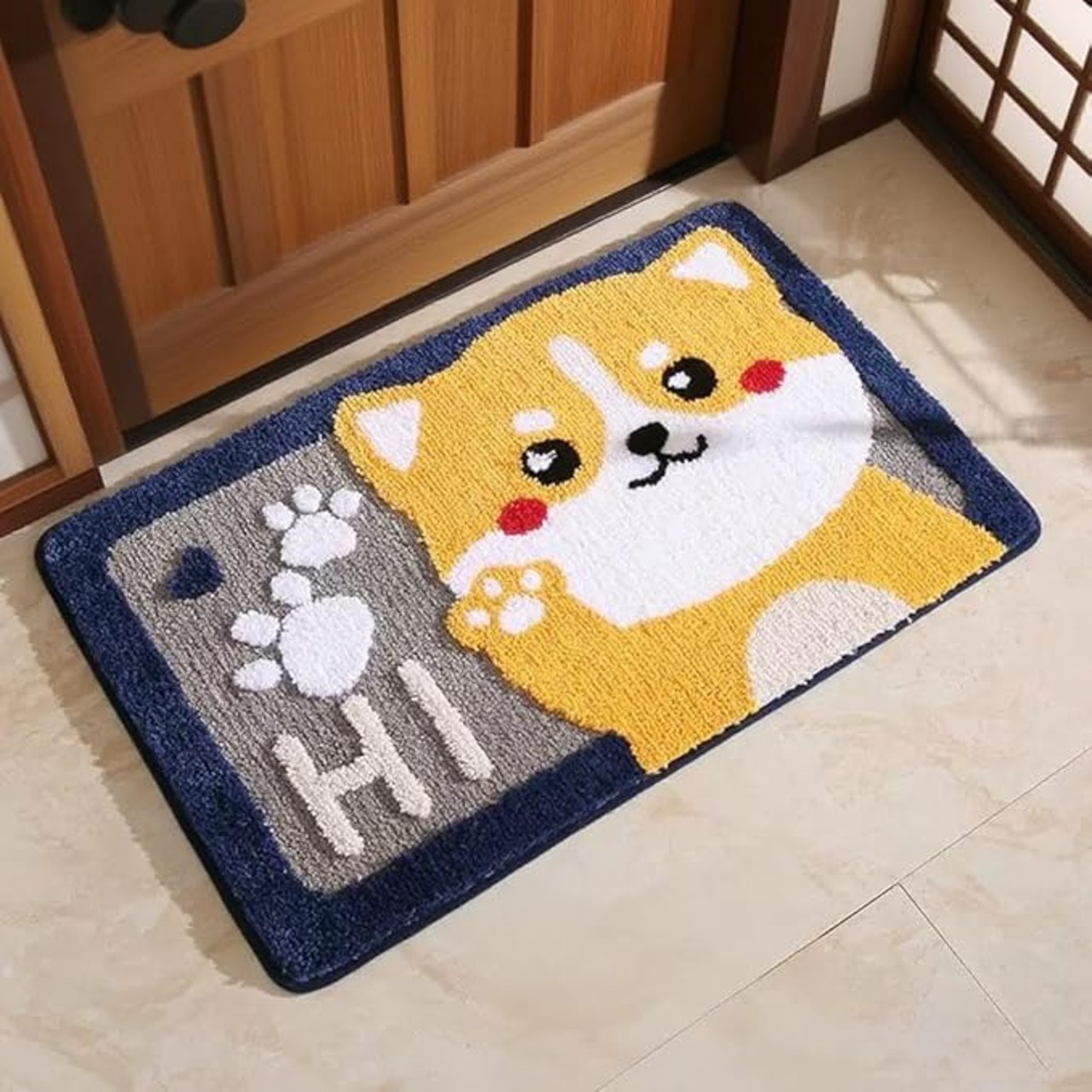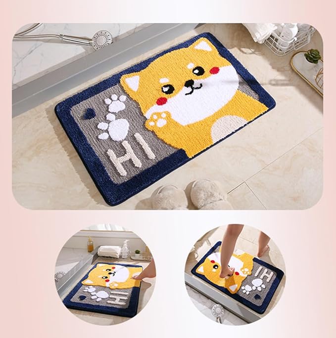玄関マット 浴室マット バスマット 吸水 滑り止め 防カビ 洗えるマット 可愛い おしゃれ ネコ柄 犬柄 廊下 洗面台 キッチン 吸湿性吸水性 柔らかい 厚手おしゃれマット 45 75cm (Hi柴犬, 50 80cm) | KAZESHOP