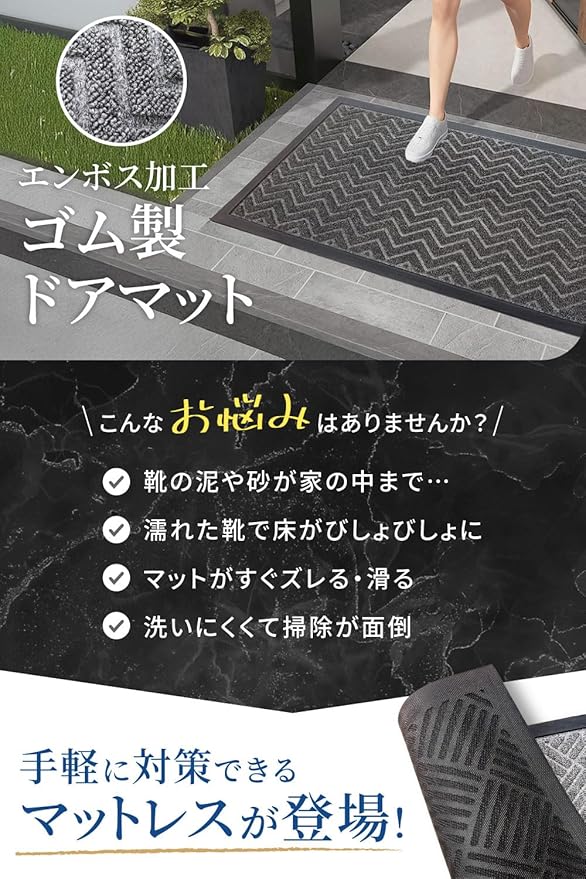 ✅【吸水・吸泥性能で雨の日も便利】 表面には吸水性・吸泥性に優れた素材を使用。雨の日の濡れた靴でも、マットが水分や泥を素早く吸収してくれるため、玄関の床が濡れにくく、掃除の手間も大幅に軽減されます。天気に左右されず快適に使えるため、梅雨や雪の日など季節を問わず大活躍する玄関マットです。
