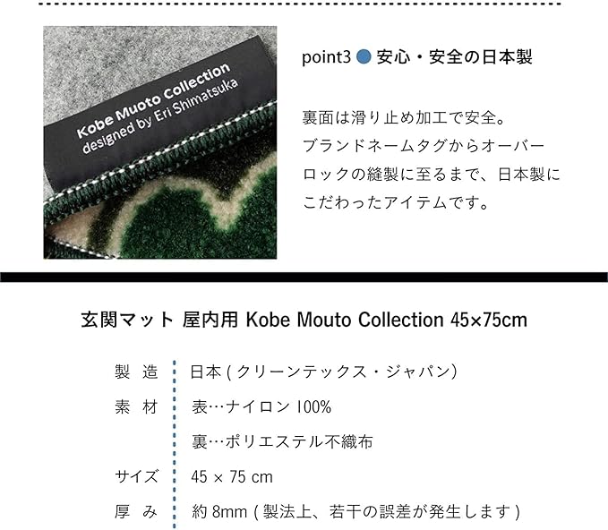 ウォッシャブルで丈夫、滑り止め仕様なので、玄関はもちろん、リビングや子供部屋から洗面所やキッチンなど水回りまで、ご家庭の様々な場面でお使い頂けます。