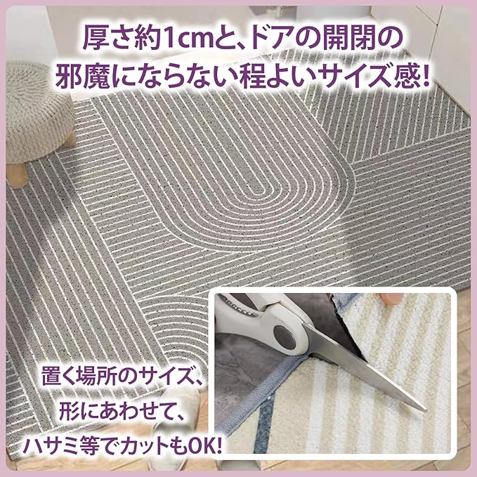 ホコリや土をしっかりキャッチしてくれる、玄関マットです。置く場所のサイズ、形にあわせて、ハサミ等でカットもOK!玄関がパッと明るくなるデザインの、おしゃれな玄関マットです。