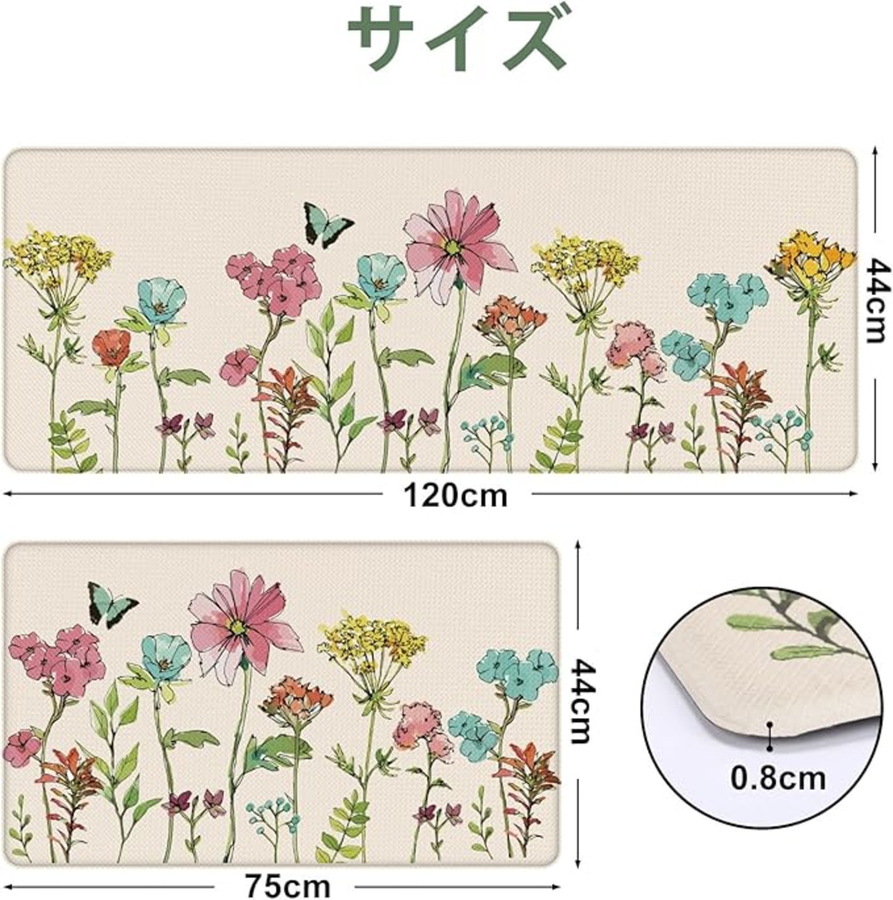2サイズで使い分け自由:大サイズ(120 44cm):シンク前や調理スペースに最適; 小サイズ(75 44cm):コンロ下やコンパクトなスペースにピッタリ