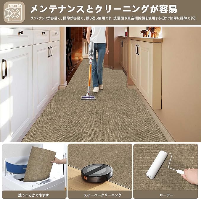 【Amazon 限定ブランド】廊下 カーペット XIWEIYI ロングカーペット ズレない 洗える 撥水 おしゃれ 無地 カーペットタイプ ロングマット 吸着 廊下敷き 防音 ラグ 無地 ペット 置くだけで吸着マット ロングマット ロールマット 廊下マット キッチンマット 玄関マット 階段マット60 240cm 厚さ4 mm TPR(モカ) | KAZESHOP