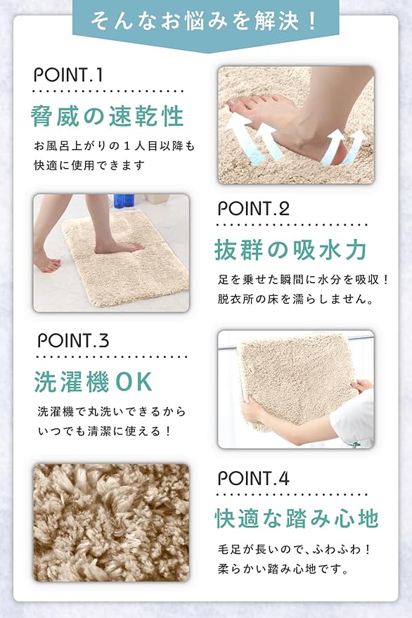 【速乾・吸水】毎日の使用に最適。迅速に水分を吸収し、サラッと乾きます。
