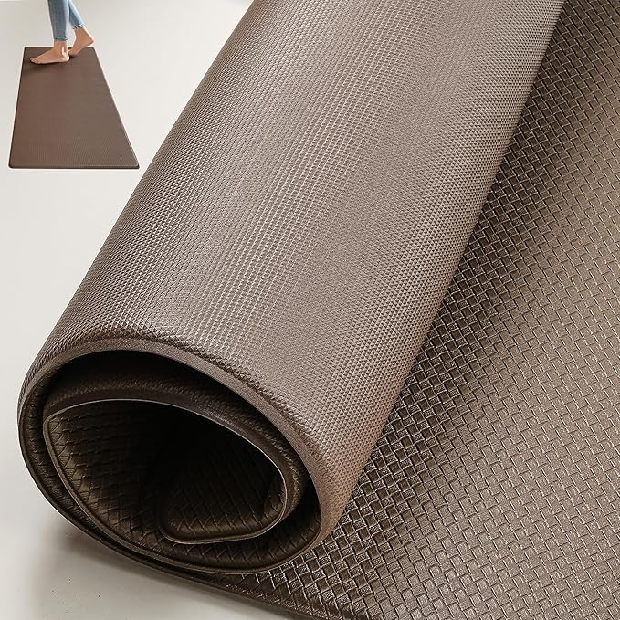 VECELO キッチンマット 幅44X奥行120cm 8mm厚 拭ける 室外 玄関マット 泥落とし 台所 吸音 カーペット フロア 滑り止め PVC お手入れ簡単 玄関マット 無地 床暖房対応 転倒防止 床保護 ブラウン | KAZESHOP