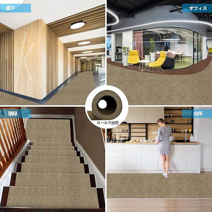 【Amazon 限定ブランド】廊下 カーペット 廊下敷き 60 600cm 厚さ4 mm Bolinker ズレない 洗える 撥水 おしゃれ 無地 カーペットタイプ 防音 ラグ 無地 ペット 置くだけで吸着マット ロングマット キッチンマット 玄関マット 階段マット(モカ) | KAZESHOP