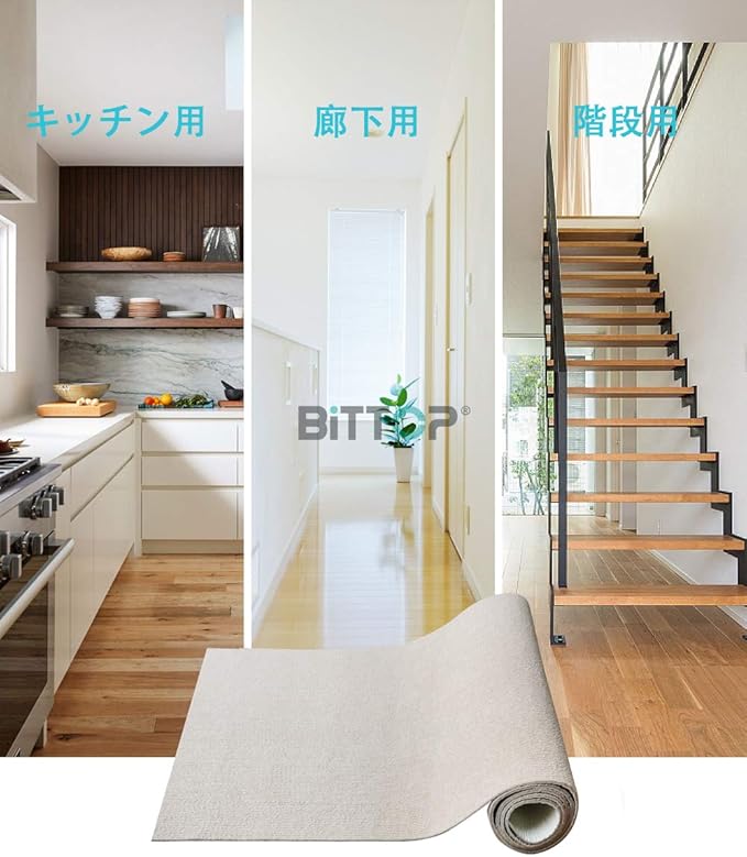 「都合によってカット可能」ハサミで自分の都合に合わせてカットできます。180 68cmのサイズなので、使いたい場所に合わせてサイズを自由にカットし、キッチンだけではなく、廊下、玄関、台所、階段、チェア、床のキズ防止用に役に立ちます。どごでも使え、マルチカーペットです。