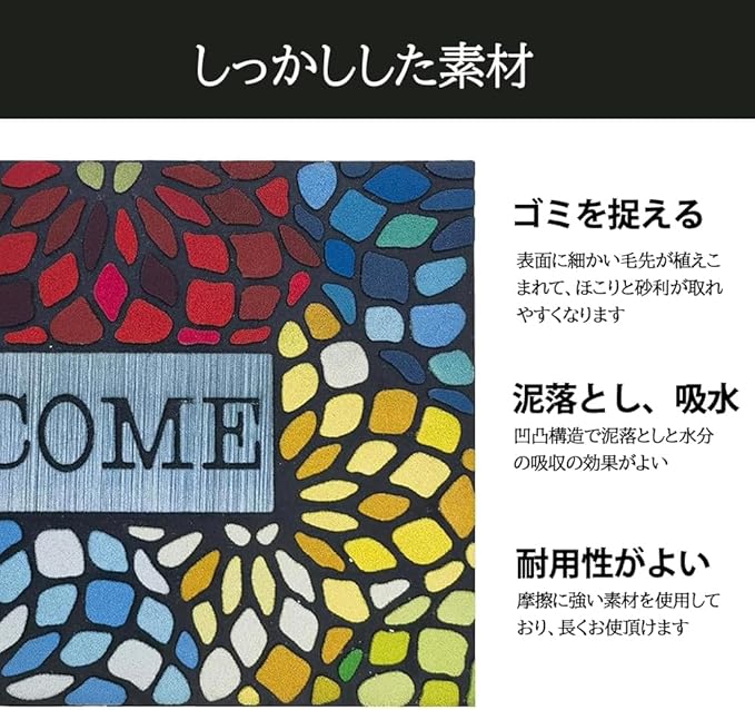 【泥落とし、吸水仕様】凹凸構造で靴裏についているごみと水分を効率的に取り除きます。