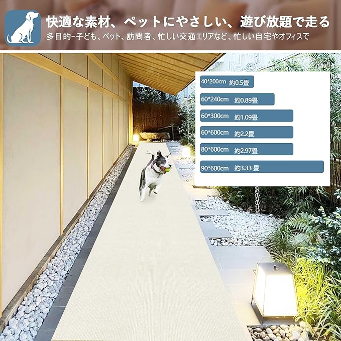 【簡単お手入れ】廊下保護マットは掃除機で手軽にお手入れ可能。水洗いの必要は少なく、汚れた際は天日干しで清潔に。開封時に折り目がついていても自然に消えますので、そのままご使用ください。万が一破損した場合やお困りのことがあれば、お気軽にご相談ください