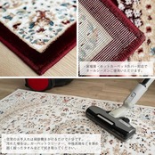 【輸入カーペットを安心してご利用いただくためのお願い】 ●輸入ラグに関して ※同じ商品でも製造ロットの違いによって、サイズや、色味、柄模様の左右が反転していたり、位置がズレている場合がございます。ただし、現地の工場や倉庫での検品をクリアした商品を輸入しています。あらかじめご了承くださいませ。/ ●においに関して ※ご使用当初、裏面に塗られる仕上げの接着塗料(ラテックス剤)のにおいがする場合がございます。人体への影響はありませんが、においに敏感の方や、ご心配の方はご理解の上ご購入お願いいたします。開封後常温のもとで気化(蒸発)するため、においはご使用につれてなくなります。気になる場合は風通しの良いところで陰干ししていただきますと、より早く解消されます。/ ●サイズに関して ※カーペットの製法上、表示サイズより0~3%の誤差がございます。/ ※いずれも商品の初期不良ではございませんので返品・交換は行なっておりません。(※お客様で返品の送料ご負担によるキャンセルは、返品規定に基づきお受けさせていただきます。)/ ※裏面の製品シールは剥がさないでご使用ください。