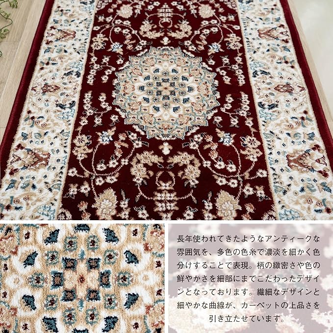 【厚み】全厚 約 12 mm 【組成】ポリプロピレン 100 % / ヒートセット加工 / ウィルトン織り品質 1㎡辺り 360,000ノット 【原産国】トルコ / ※リニューアルに伴いオリエンタルスタイル1とは、色合いデザインが若干異なります。