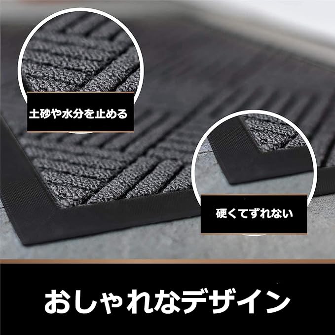 【シンプルなデザイン】マット表面の凸凹が屋内に持ち込みたくない靴底についた泥、ホコリや水などをしっかり捕らえ、効率的に落とし、泥、ホコリや水などとる効果を高めています。優れた吸水性で長い梅雨の日でも大雪の日でもフロア汚れを最小限に抑えます!